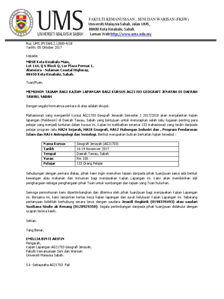 Surat Memohon Tajaan Mbsb Kota Kinabalu Main Pdf