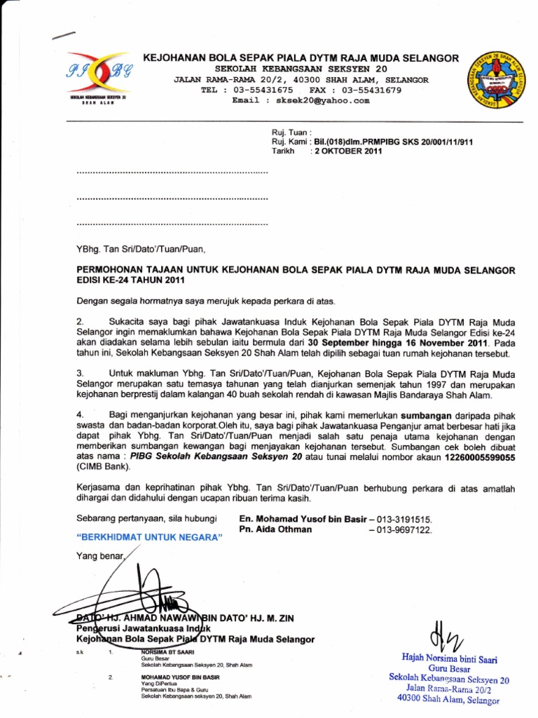 Contoh Surat Memohon Sumbangan Yb Contoh Surat